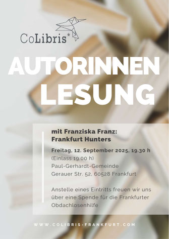 Franziska Franz veröffentlicht seit 2018 mit Begeisterung Krimis. In „Frankfurt Hunters“ hat sie sich literarisch mit dem Thema Obdachlosigkeit und Gewalt auf der Straße auseinandergesetzt.