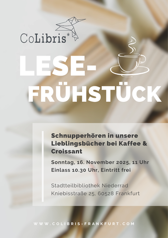 Diese Veranstaltung ist kostenfrei und es dürfen so viele Zuhörer:innen kommen, wie in die Bücherei passen. Wer etwas zum Frühstücksbuffet beisteuert, kommt auf jeden Fall rein. :)